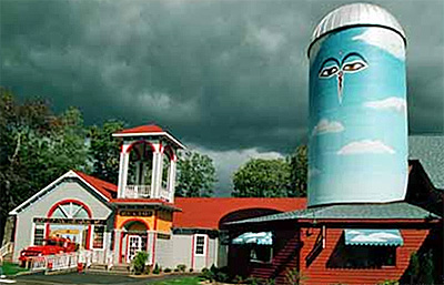 What happens after ex-hippies go to business school? Perhaps they build things like the World's Largest Kaleidoscope, anchor of the Catskill Corners boutique mall, "New York's most innovative family entertainment complex." A mysterious pair of eyes are painted on the converted grain silo that houses the 60-foot tall Kaatskill Kaleidoscope. Nearby, a giant fiberglass fish leaps from a pond; the front half of a fire engine sticks out of an attached restaurant. Like nearly everything in the Catskills, a slick film of hucksterism coats this attraction -- but it's not necessarily a bad thing.